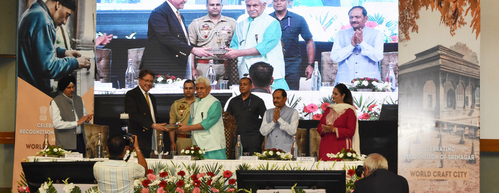 The vibrant and culturally rich city of Srinagar, nestled in the picturesque Union Territory of Jammu & Kashmir, India, has been honored with the prestigious designation of "WCC-World Craft City" by the World Crafts Council AISBL (WCC International). The certificate presentation ceremony were attended by the WCC AISBL President, Mr. Saad al-Qaddumi; WCC AISBL Secretariat, Mrs. Girija Sudhakaran and the Jury members. The celebrations included various events, presentations, Craft tours, stakeholders meeting, and a grand event. Organized by the Govt of Jammu and Kashmir the celebrations were held from July 30 to August 1, 2024, which brought together government officials, artisans and stakeholders to commemorate Srinagar's newfound status, after being recognized as UNESCO Creative City.